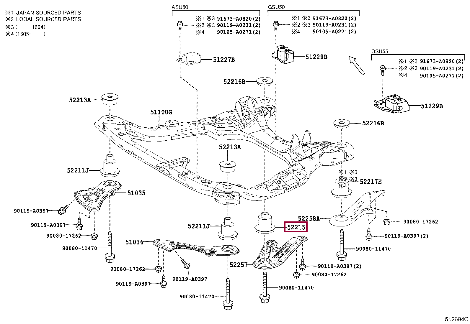 52215-06030, CUSHION, FRONT SUSPENSION MEMBER BODY MOUNTING, REAR