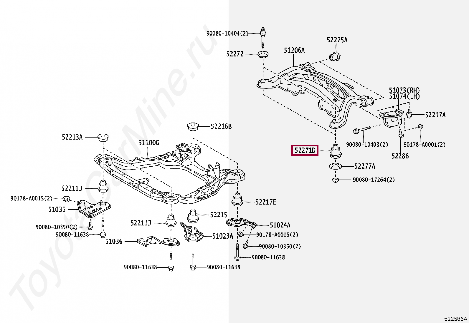 52271-32010, CUSHION, REAR SUSPENSION MEMBER BODY MOUNTING, FRONT