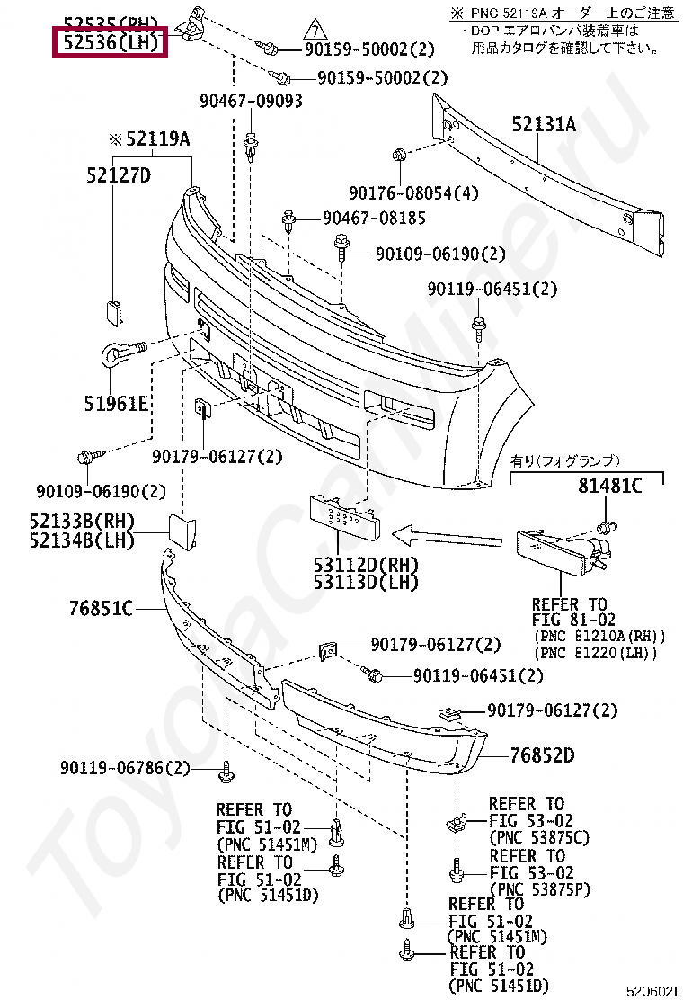 52536-52040, RETAINER, FRONT BUMPER SIDE, LH