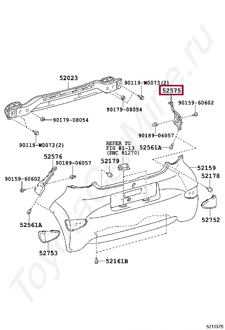 52575-0H010, RETAINER, REAR BUMPER SIDE, RH