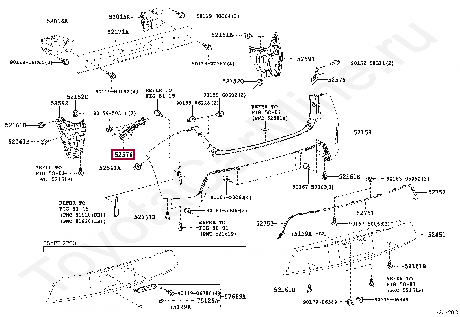 52576-02091, RETAINER, REAR BUMPER SIDE, LH
