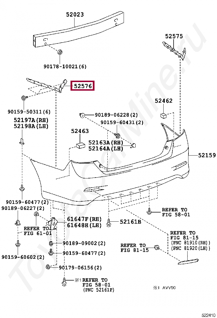 52576-33090, Направляющая заднего бампера левая
