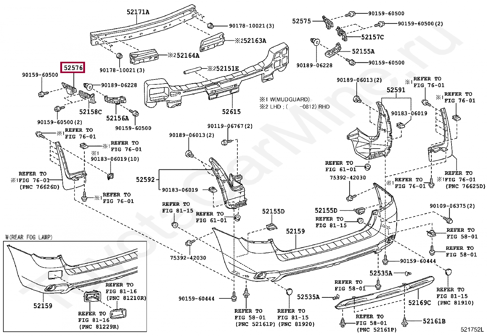 52576-48030, RETAINER, REAR BUMPER SIDE, LH