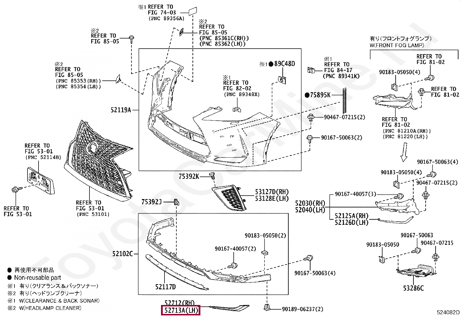 52713-48030, MOULDING, FRONT BUMPER SIDE, LH