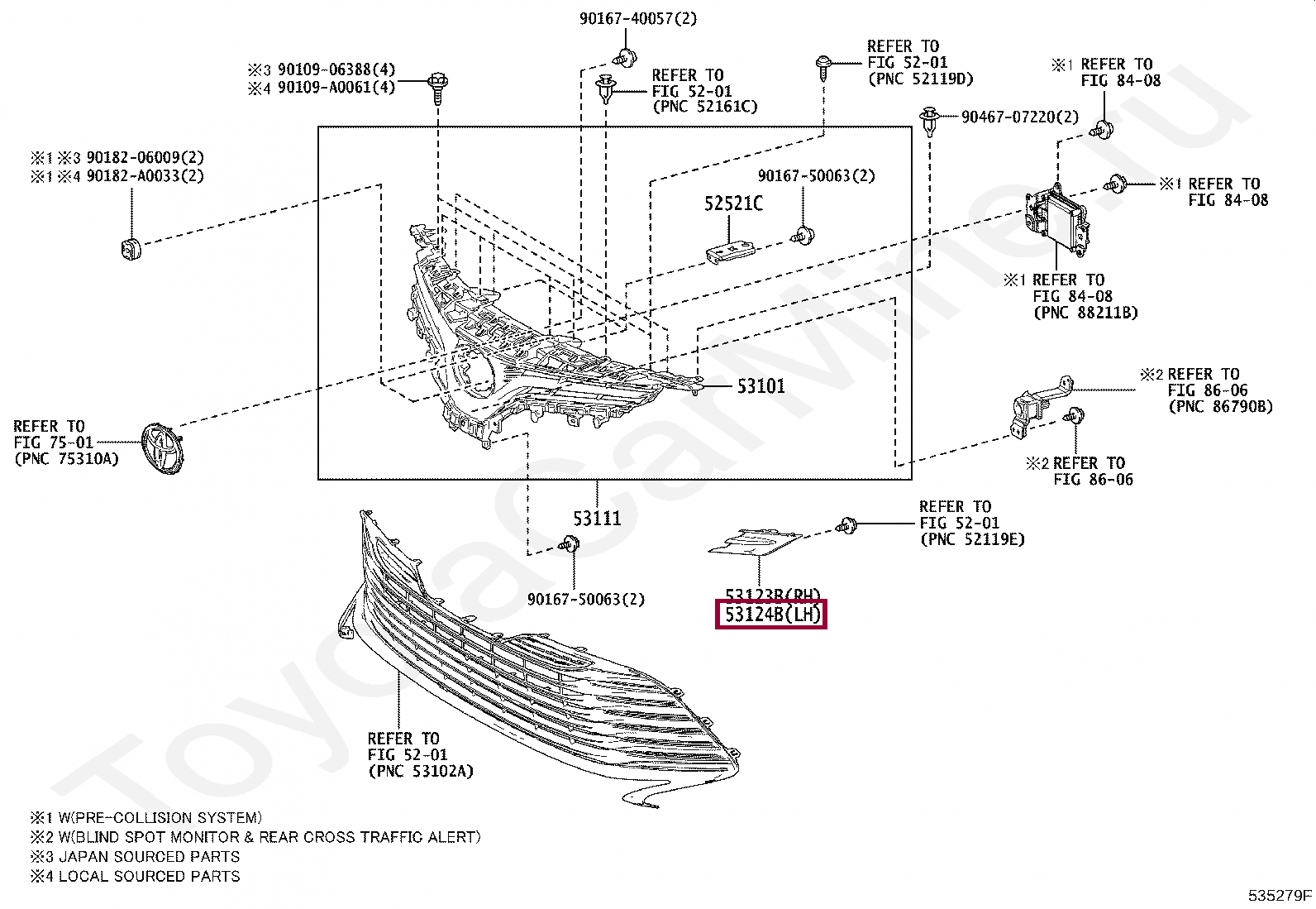 53124-06150, Молдинг решетки радиатора левый
