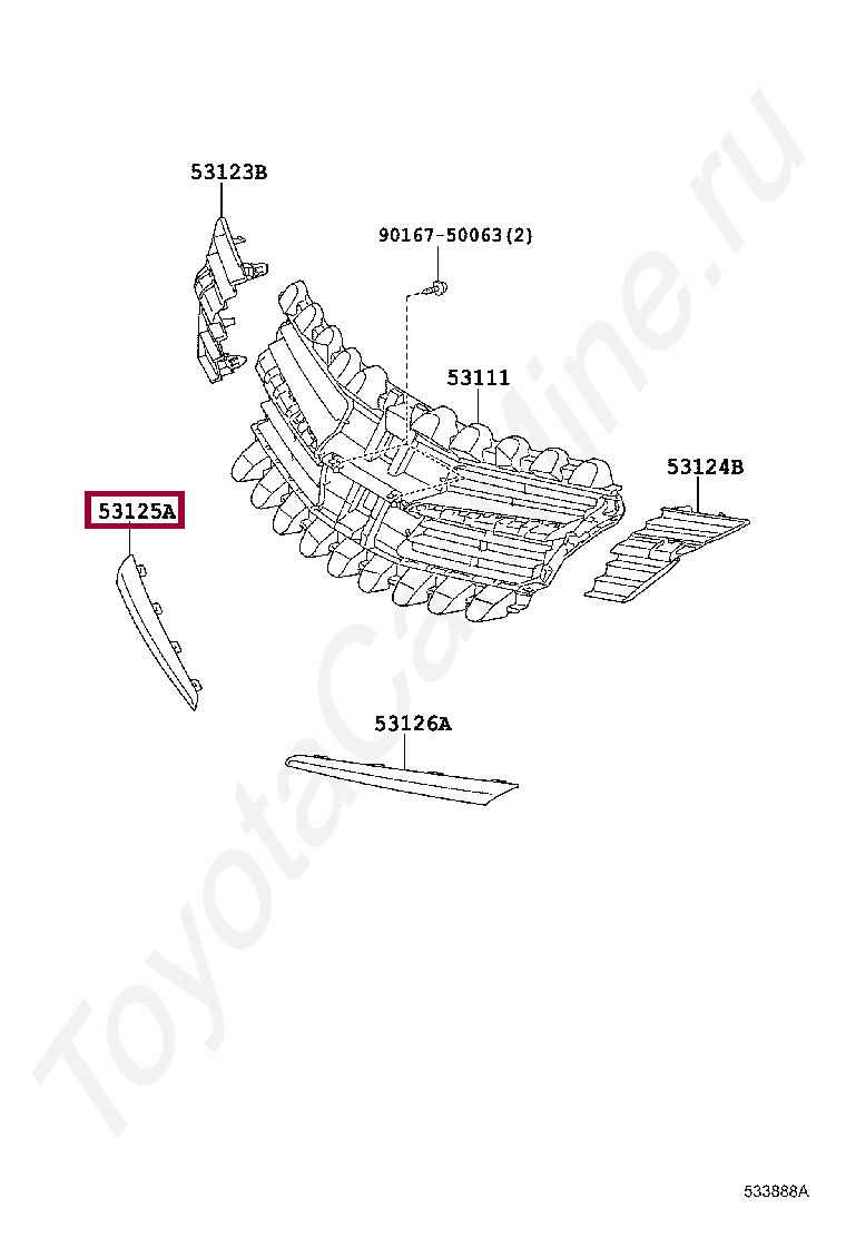 53125-0F020, MOULDING, RADIATOR GRILLE, CENTER RH