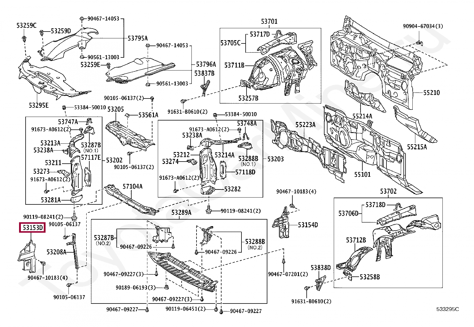 53153-30190, GUIDE, RADIATOR GRILLE SIDE AIR, RH