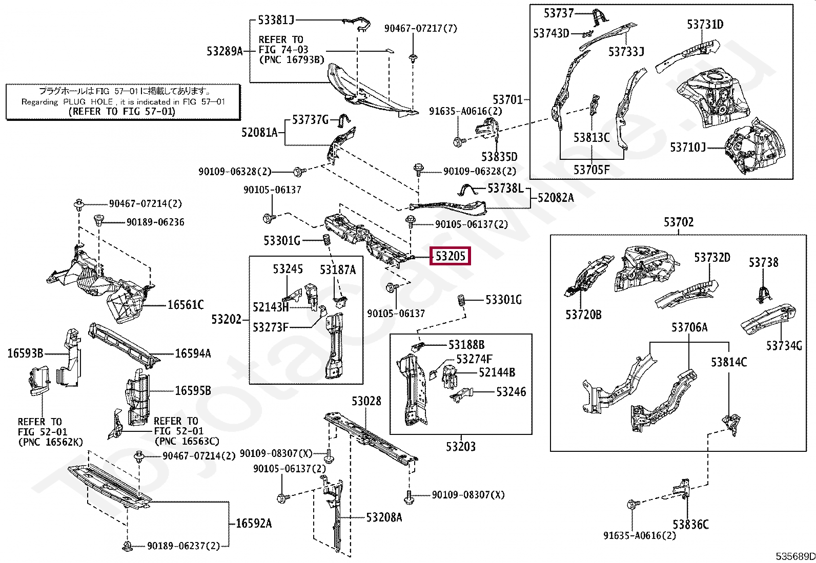 53205-76010, SUPPORT SUB-ASSY, RADIATOR, UPPER