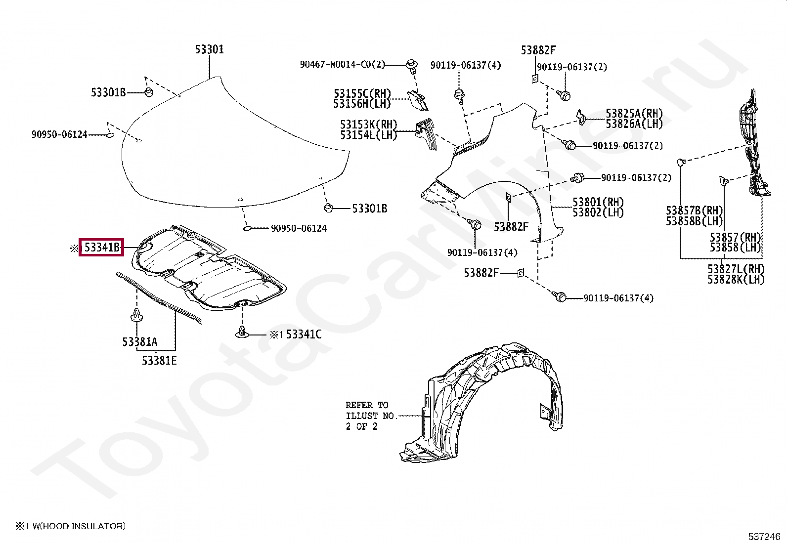 53341-02280, INSULATOR, HOOD
