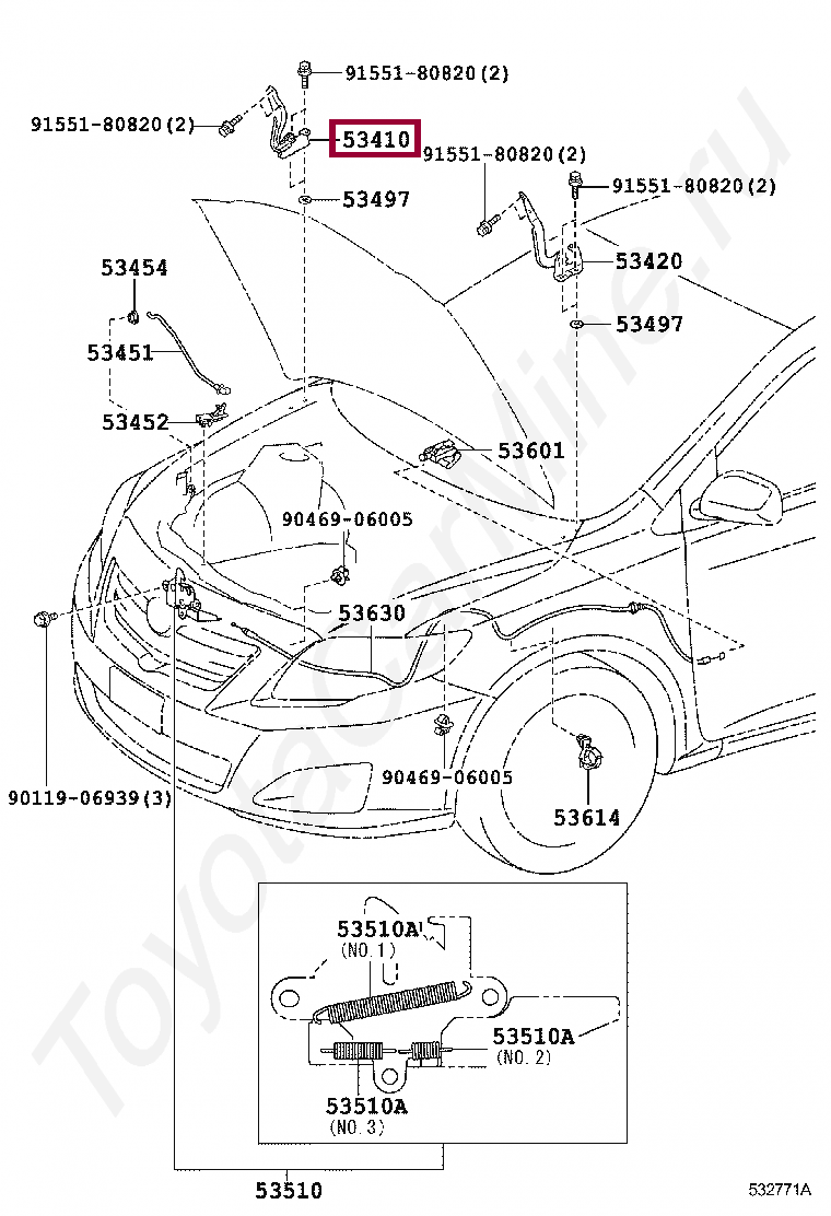 53410-02240, HINGE ASSY, HOOD, RH