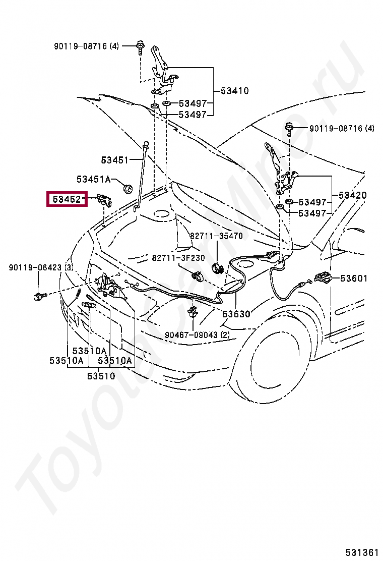53452-02020, HOLDER, HOOD STAY