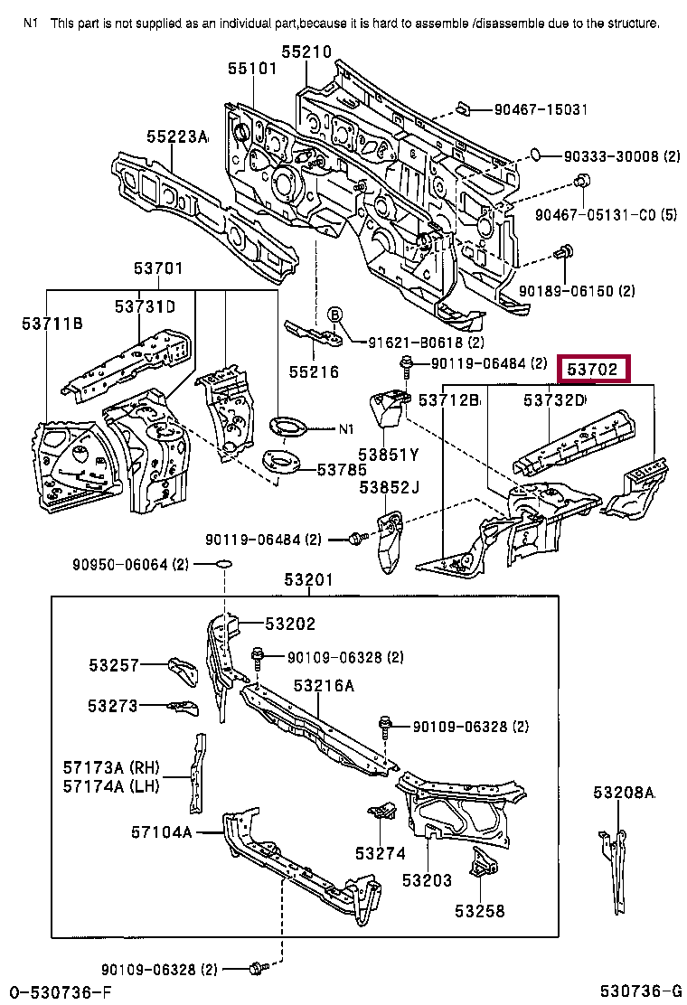 53702-53014, APRON SUB-ASSY, FRONT FENDER, LH