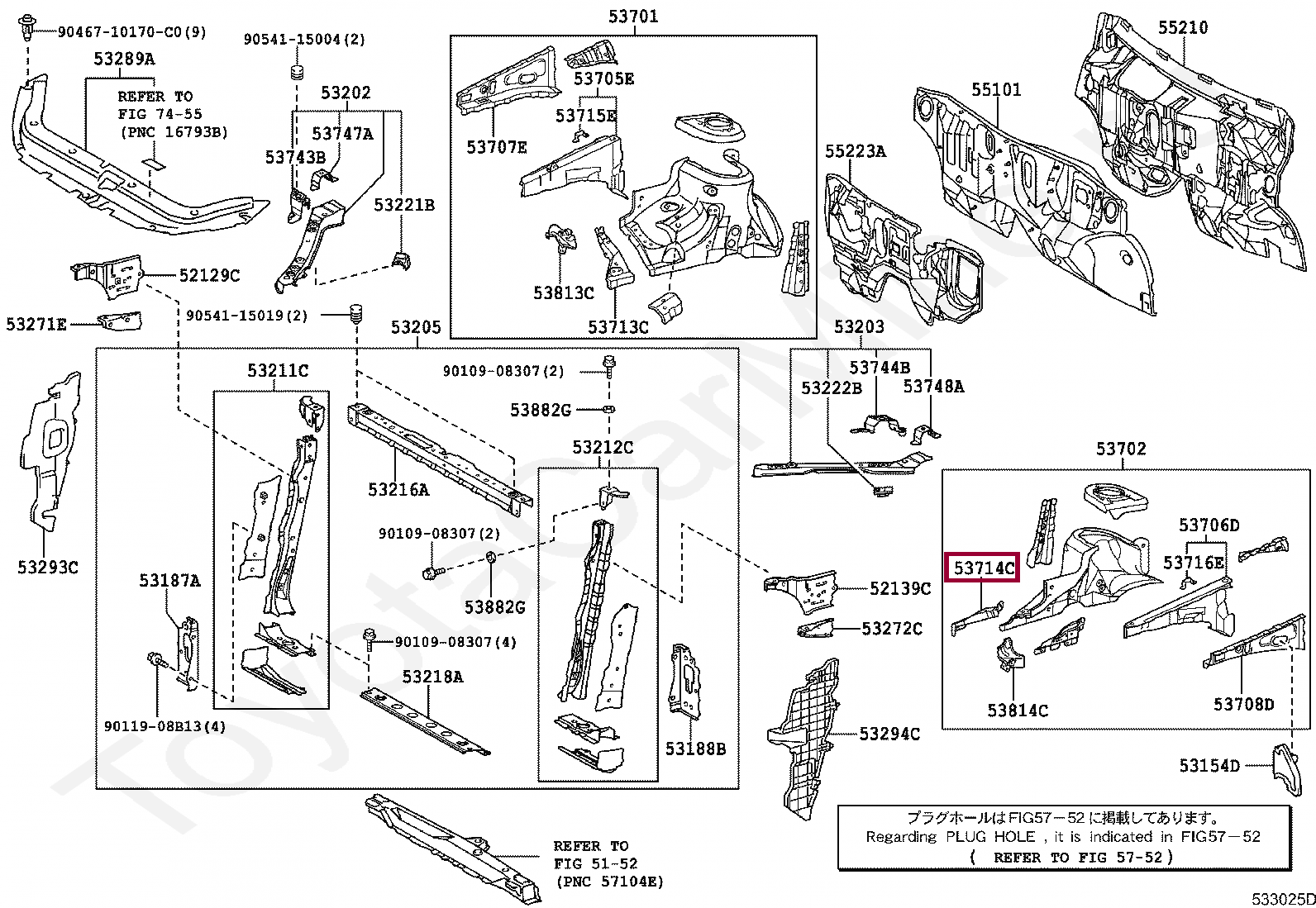 53714-42041, EXTENSION, FRONT FENDER APRON, FRONT LH