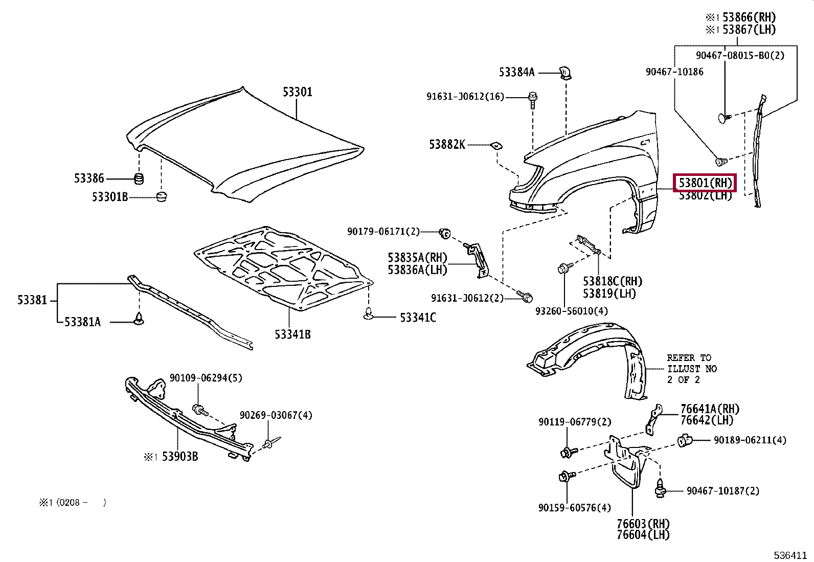 53801-60891, FENDER SUB-ASSY, FRONT RH