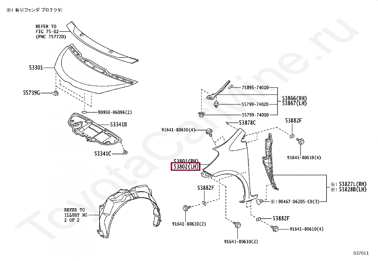 53802-74030, FENDER SUB-ASSY, FRONT LH