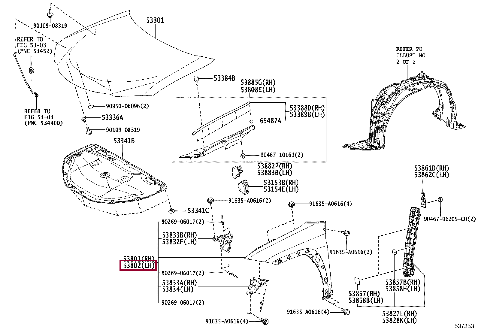 53802-76030, FENDER SUB-ASSY, FRONT LH