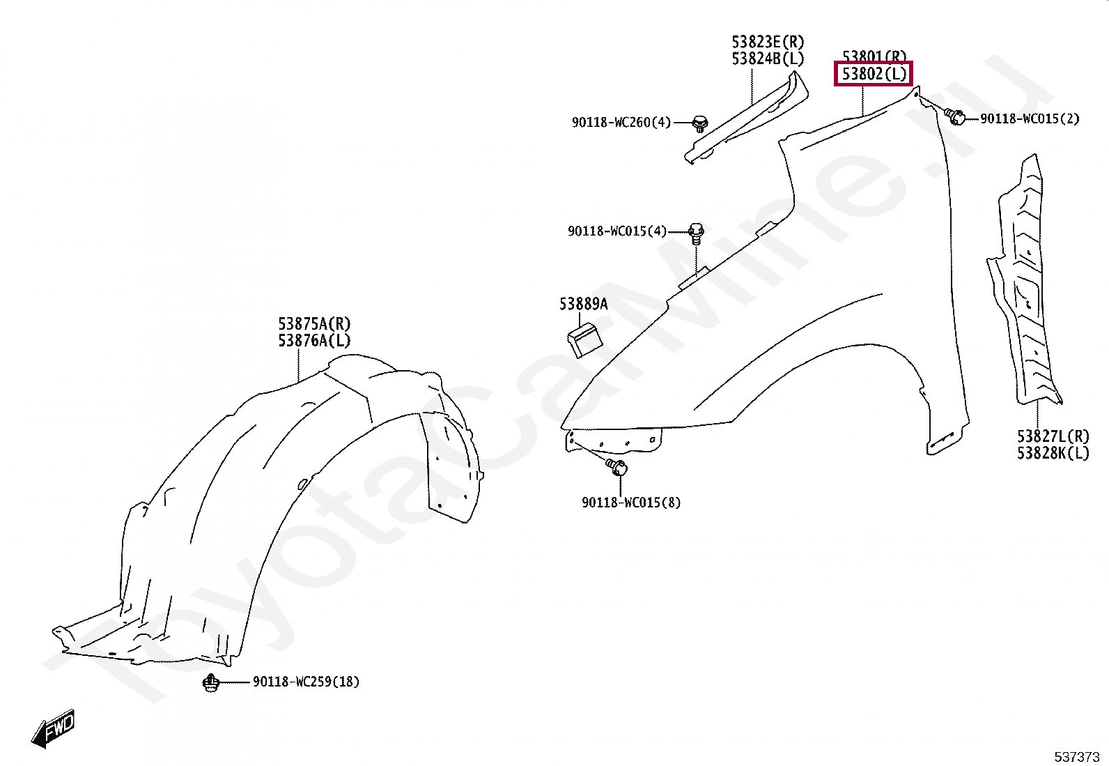 53812-WC003, FENDER SUB-ASSY, FRONT LH