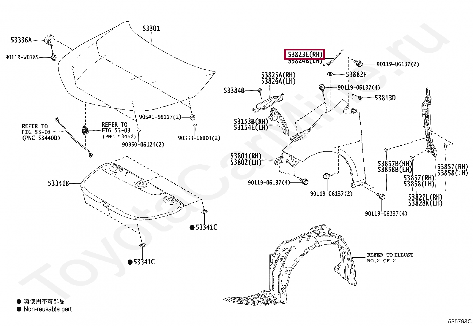 53823-02190, PROTECTOR, FRONT SIDE PANEL, NO.2 RH
