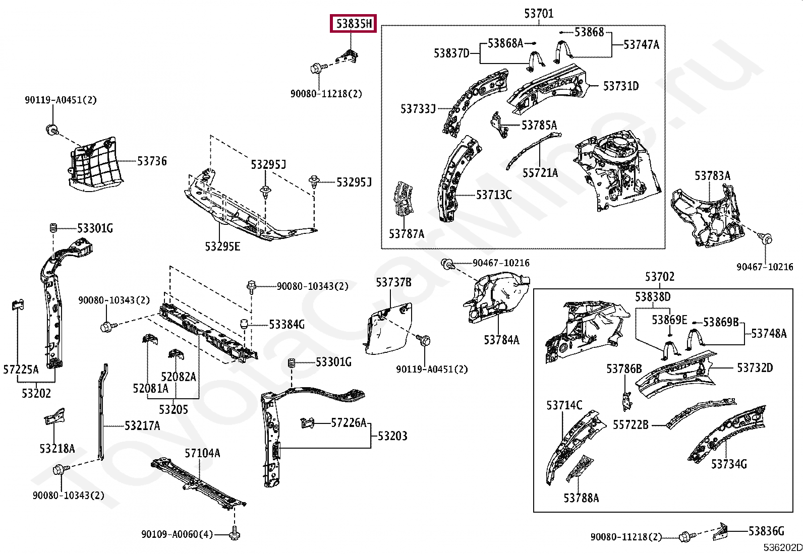 53835-0E080, BRACE, FRONT FENDER TO EXTENSION, RH