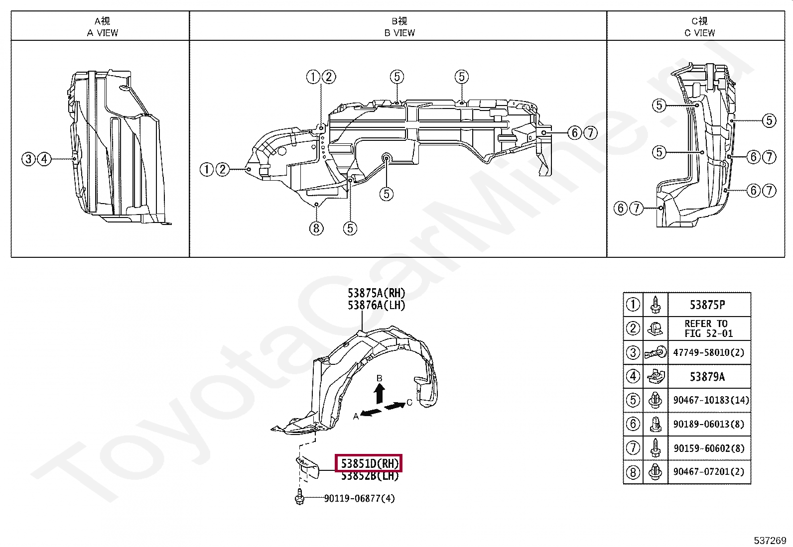53851-02040, PAD, FRONT WHEEL OPENING EXTENSION, RH