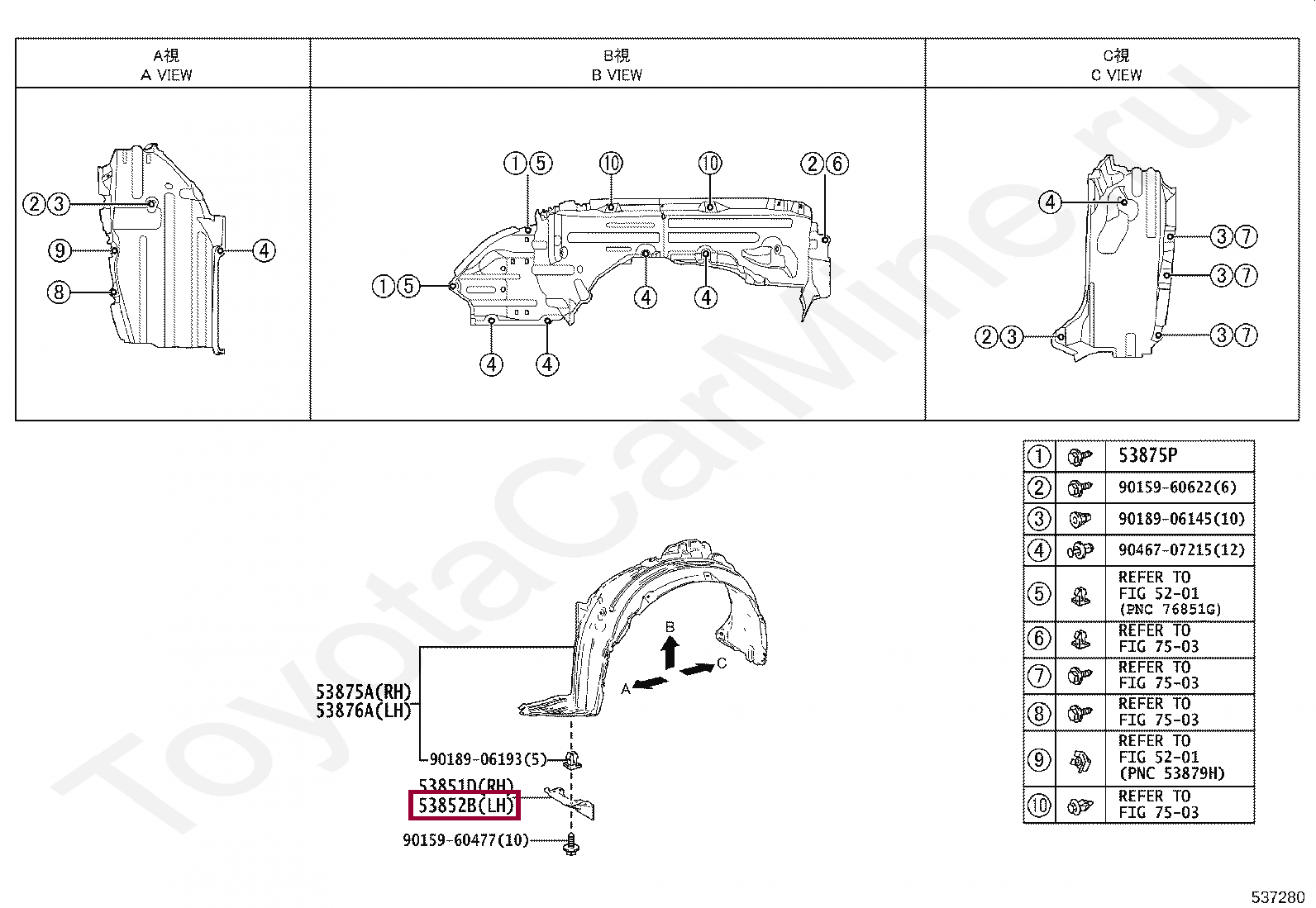 53852-F4010, Брызговик переднего левого подкрылка, передний