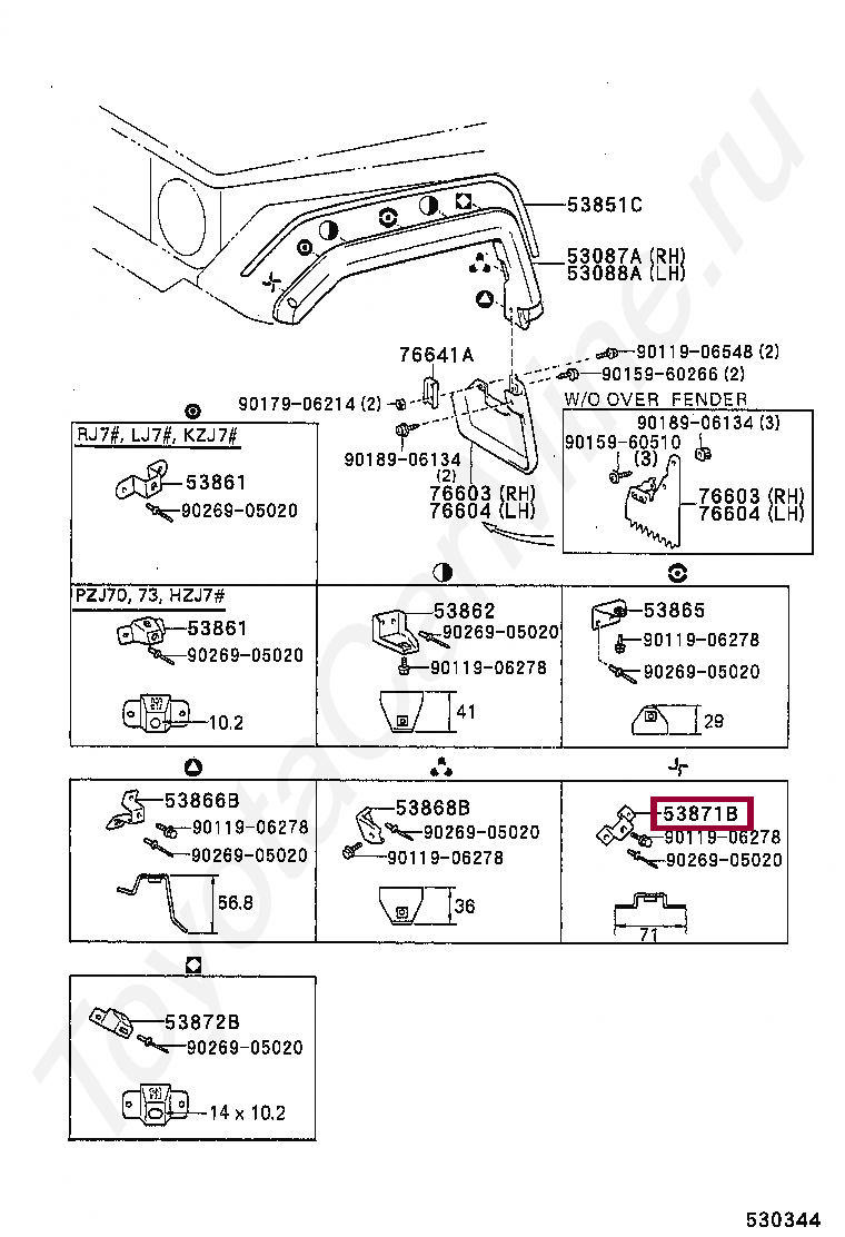 53871-60010, BRACKET, FRONT WHEEL OPENING, NO.7