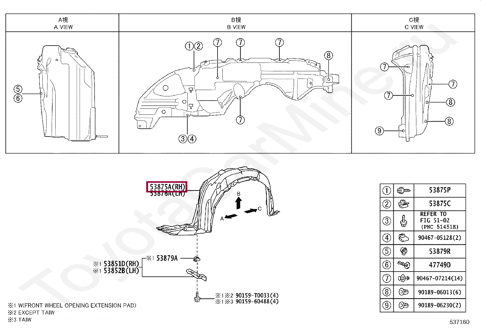53875-0D561, LINER, FRONT FENDER, RH
