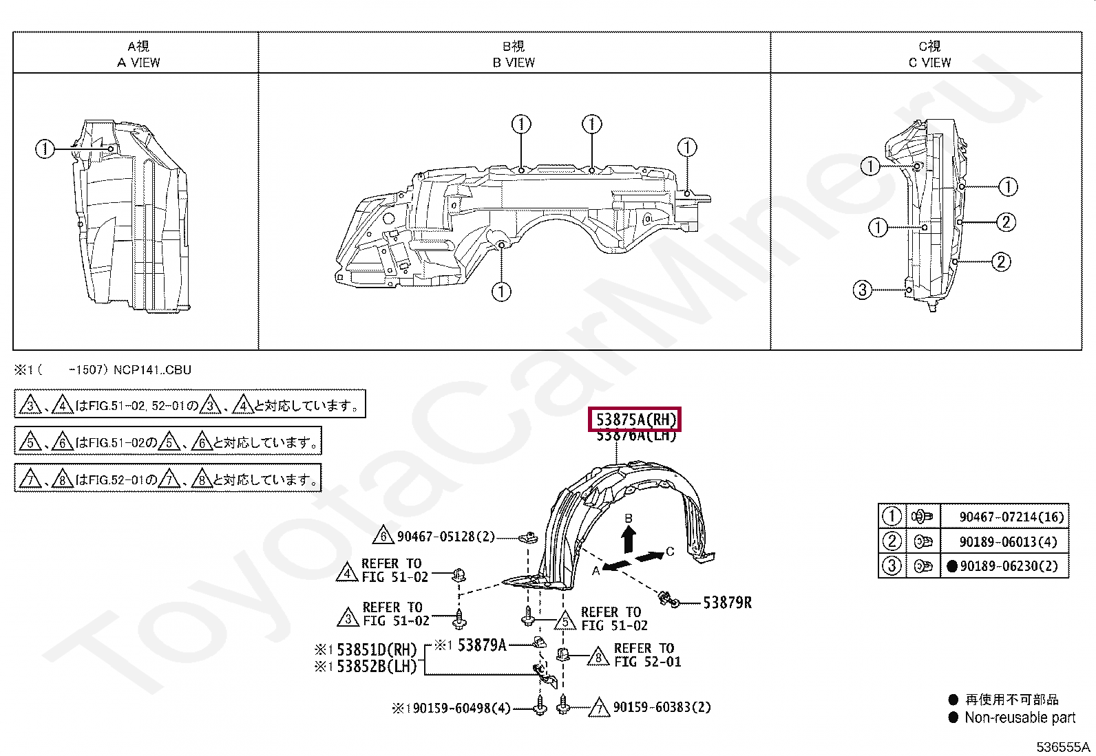 53875-52390, LINER, FRONT FENDER, RH