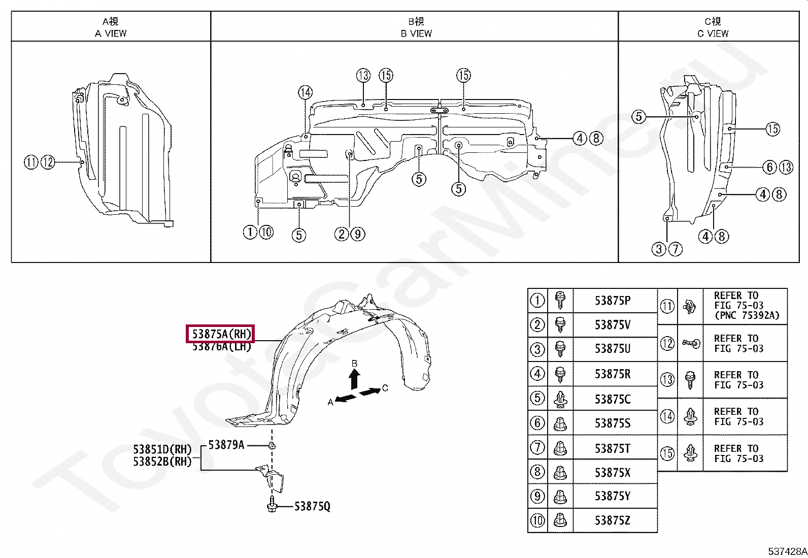 53875-52512, LINER, FRONT FENDER, RH