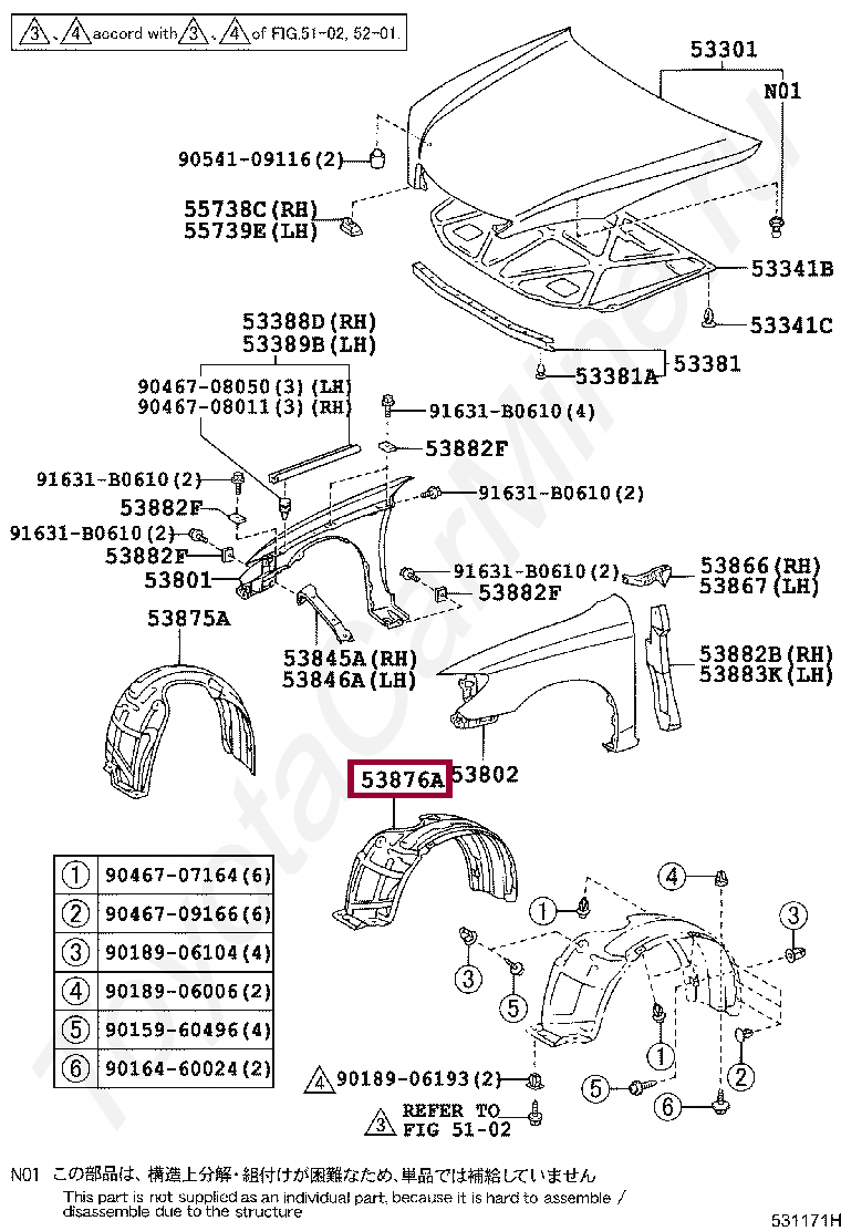 53876-33111, LINER, FRONT FENDER, LH