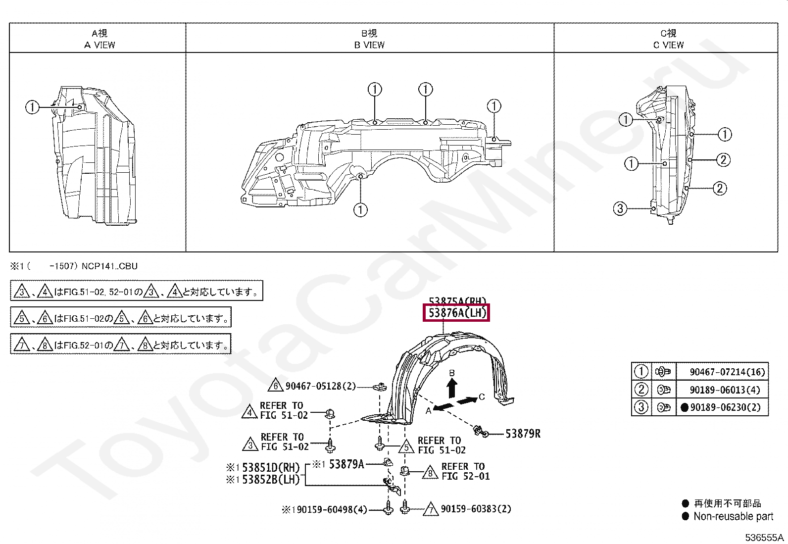 53876-52380, LINER, FRONT FENDER, LH