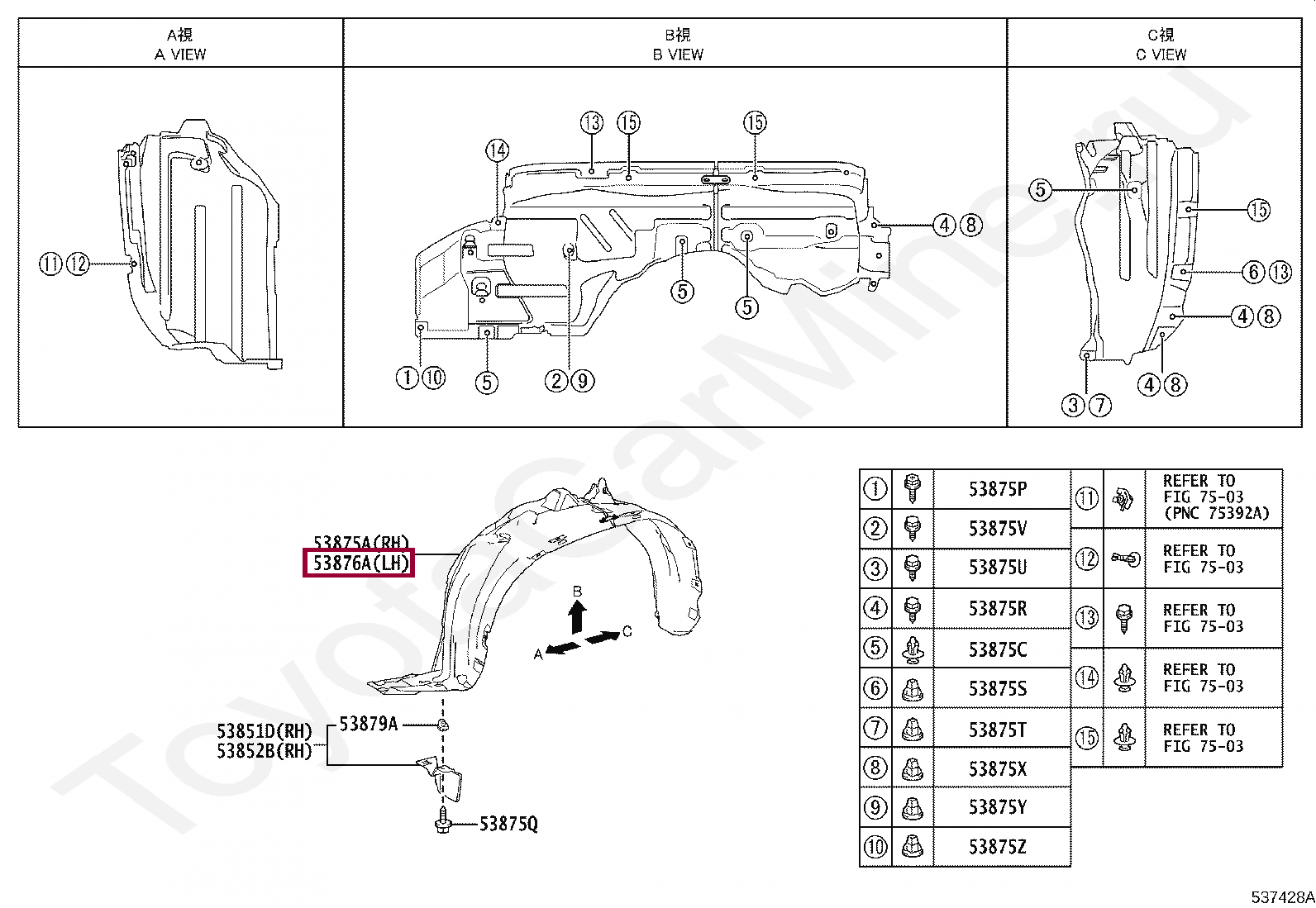 53876-52512, LINER, FRONT FENDER, LH