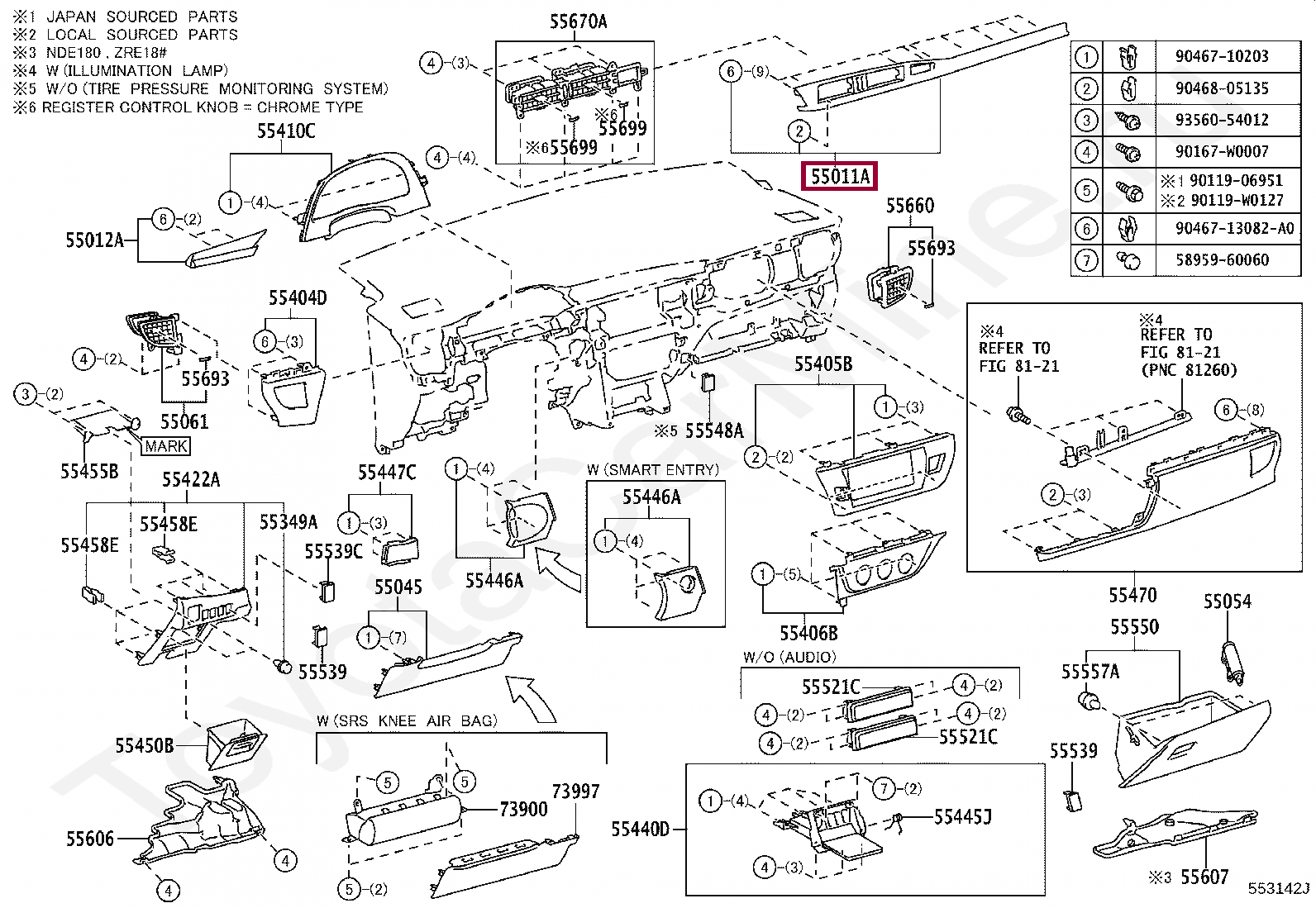 55011-02041-B0, GARNISH SUB-ASSY, INSTRUMENT PANEL, NO.1