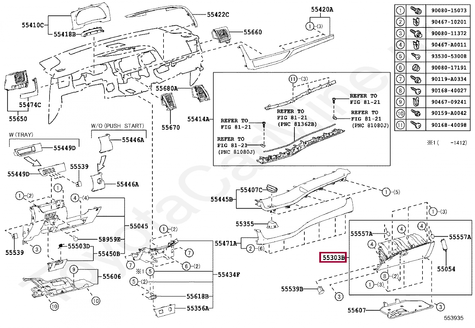 55303-0E051-C1, PANEL SUB-ASSY, INSTRUMENT, LOWER