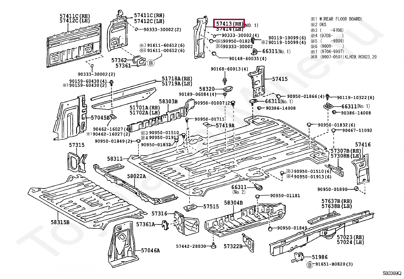 57414-26390, RAIL, FLOOR SIDE, CENTER RH
