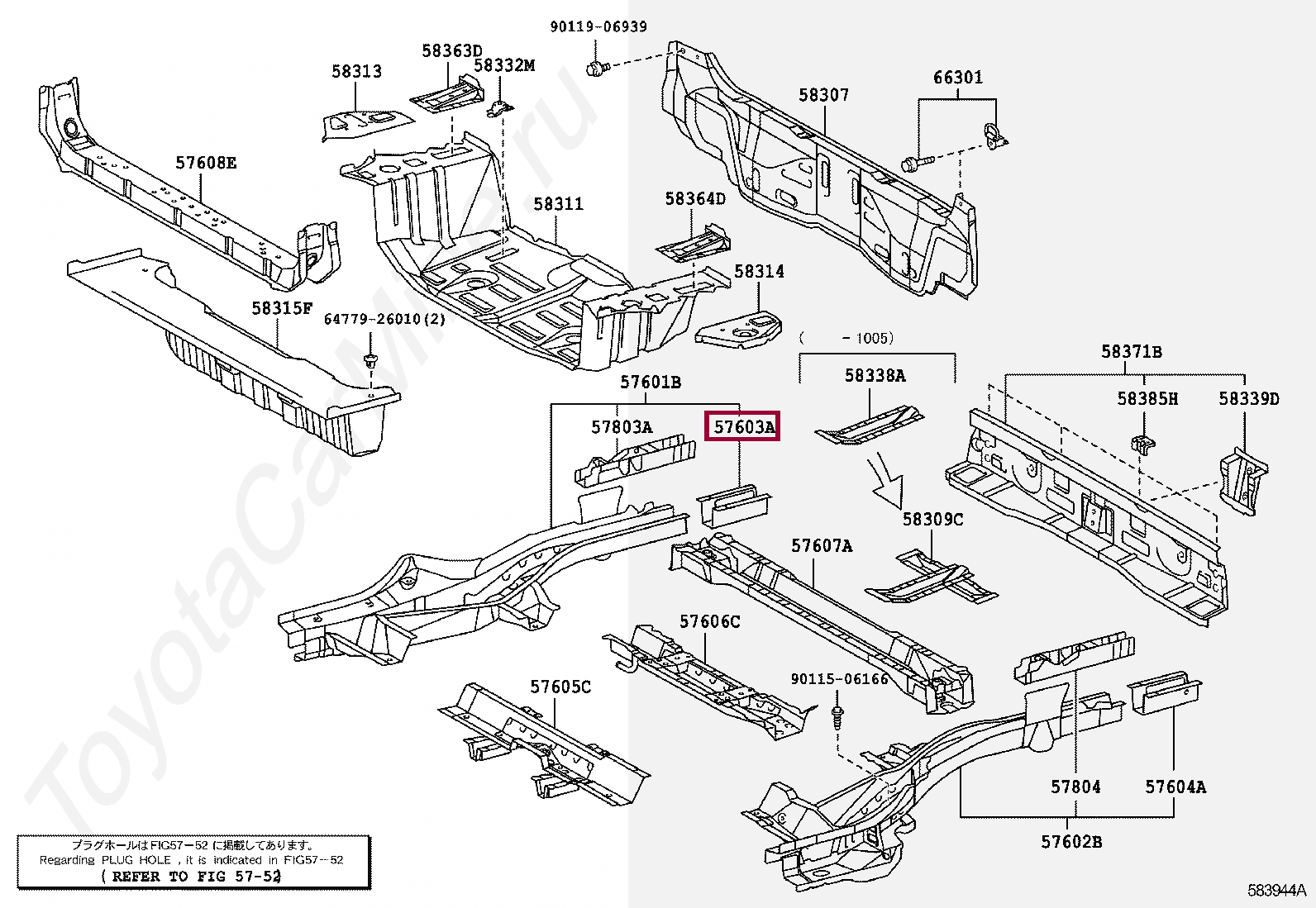 57603-42031, MEMBER SUB-ASSY, REAR FLOOR SIDE, REAR RH