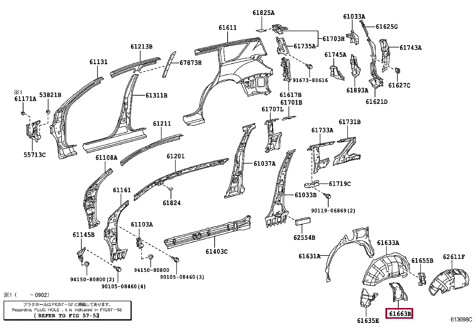 61067-42010, REINFORCEMENT, QUARTER WHEEL HOUSE, INNER CENTER RH