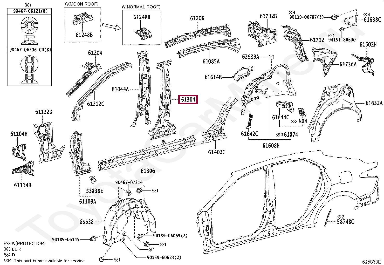61304-33101, REINFORCE SUB-ASSY, CENTER BODY PILLAR, UPPER LH