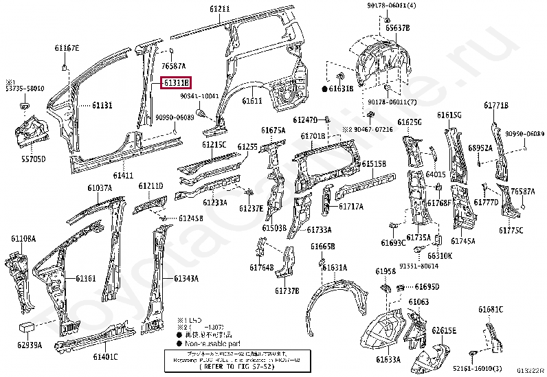 61311-58021, PILLAR, CENTER BODY, OUTER RH