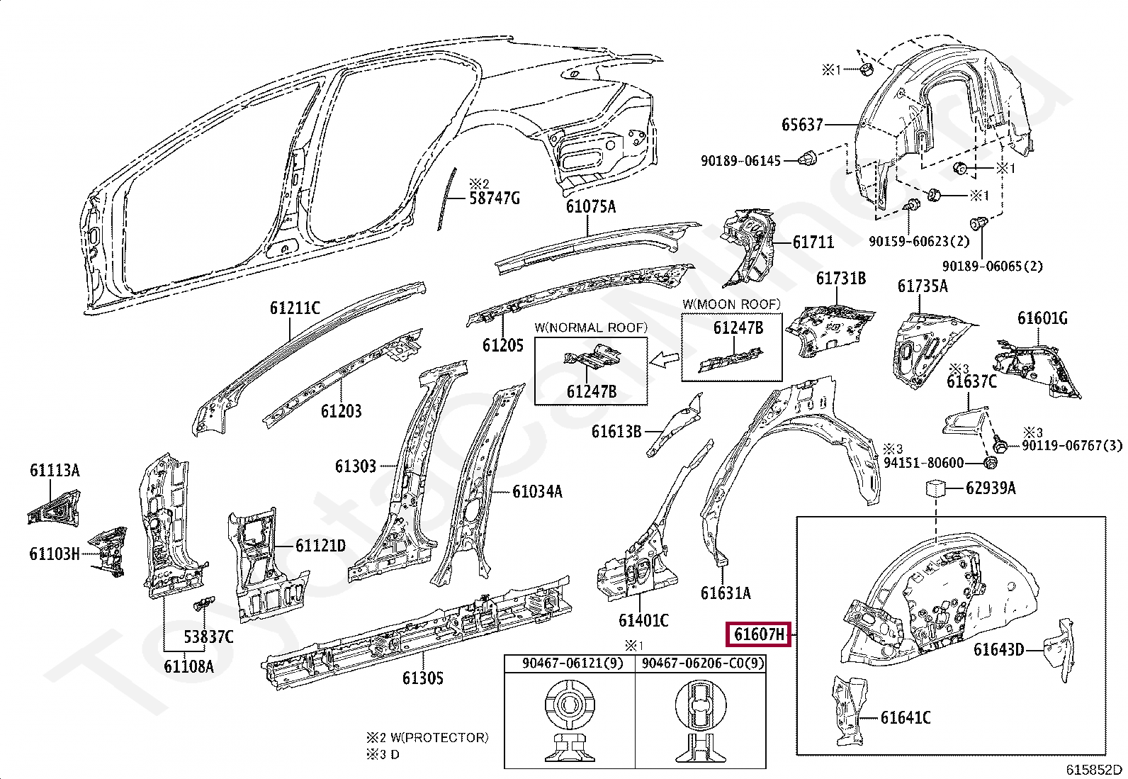61607-33080, PANEL SUB-ASSY, QUARTER WHEEL HOUSE, INNER RH