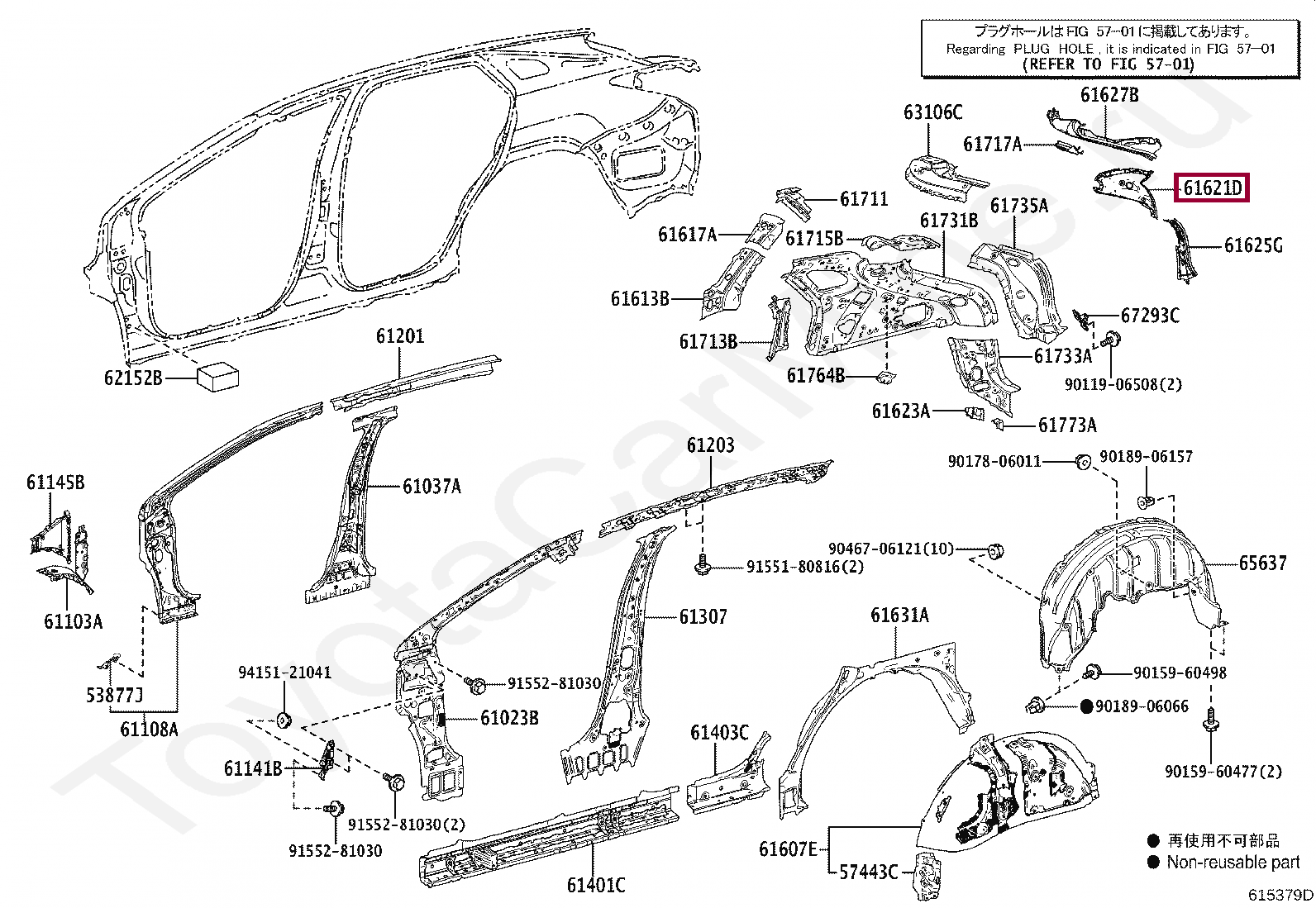 61621-48070, TROUGH, BACK DOOR OPENING, RH