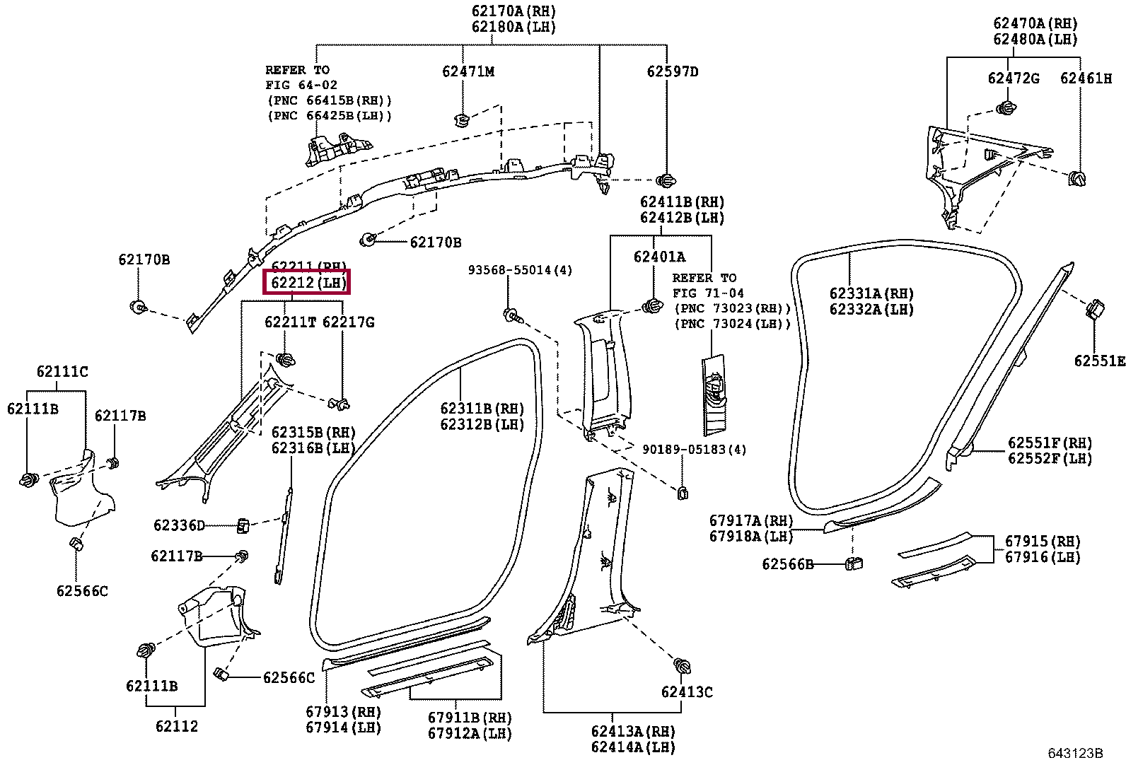 62220-33182-B1, GARNISH, FRONT PILLAR, LH