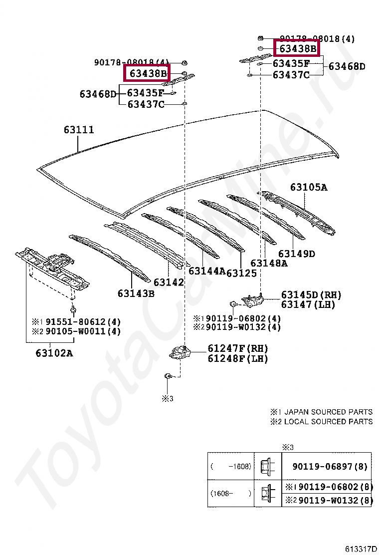 63438-20010, SEAL, ROOF CARRIER, NO.3 RH