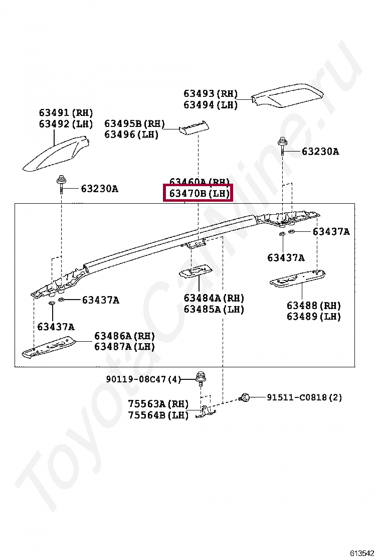 63470-60060, RACK ASSY, ROOF, LH