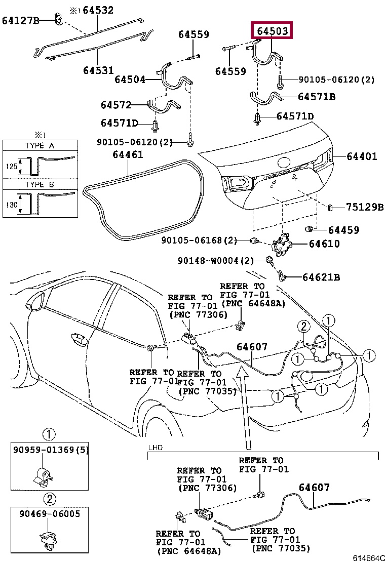 64503-02160, ARM SUB-ASSY, LUGGAGE COMPARTMENT DOOR HINGE, LH