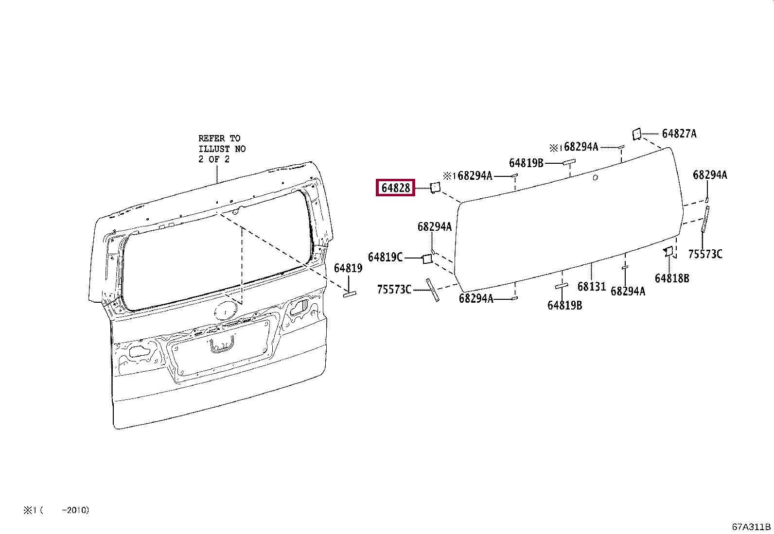 64828-26040, CLIP, BACK WINDOW GLASS, LH