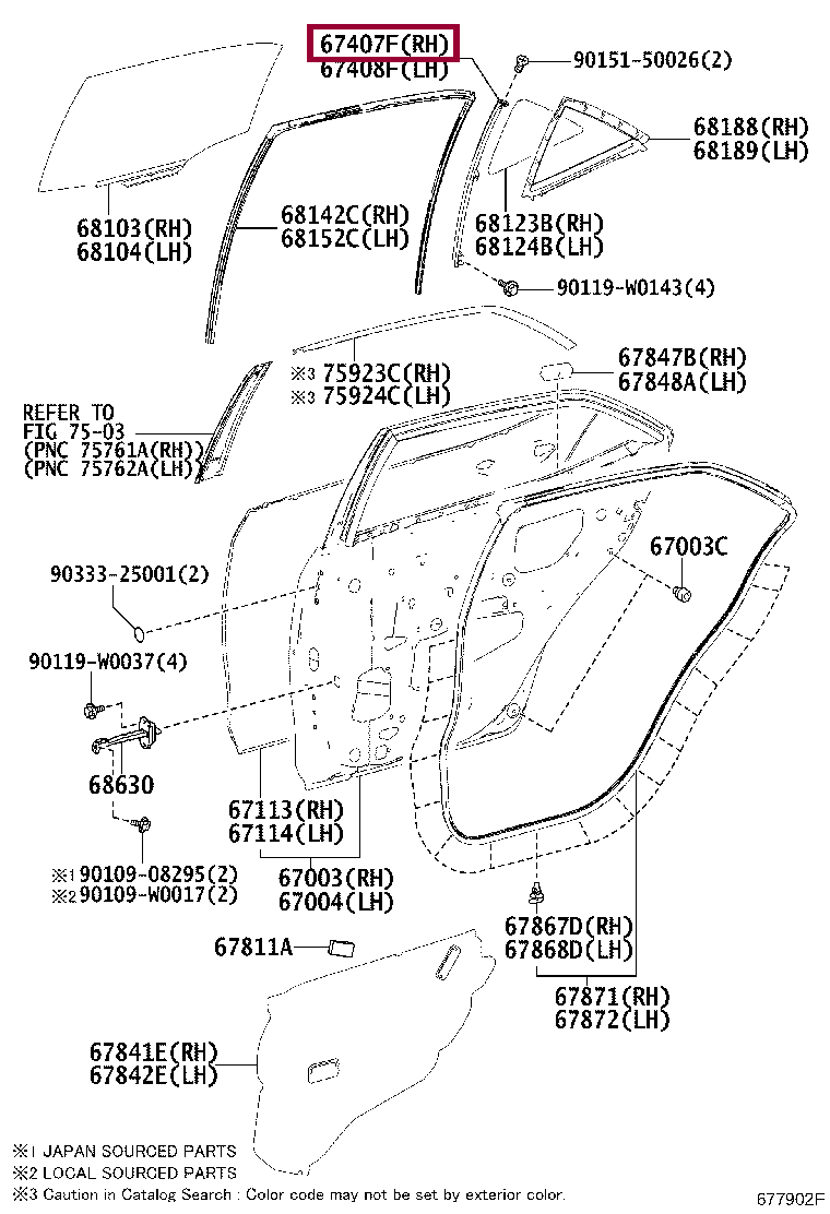 67407-12340, FRAME SUB-ASSY, REAR DOOR WINDOW, REAR LOWER RH