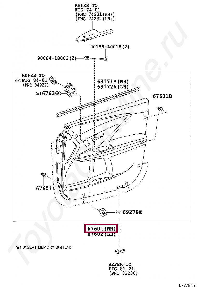 67610-0T061-C4, BOARD SUB-ASSY, FRONT DOOR TRIM, RH