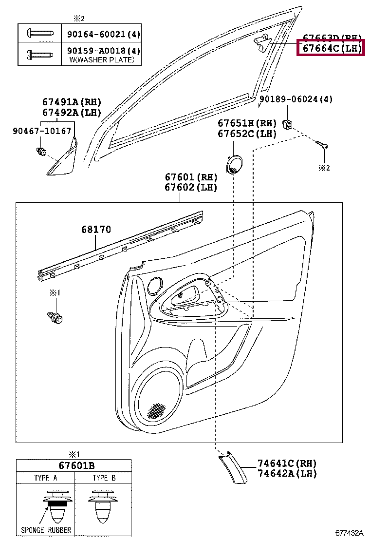 67664-0R010, GARNISH, DOOR FRAME, LH