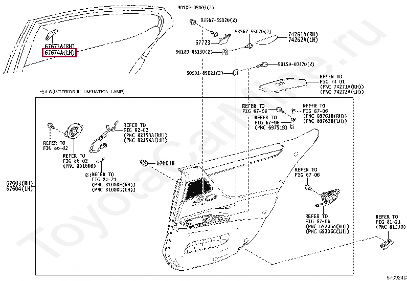 67674-33160, GARNISH, REAR DOOR FRAME, LH